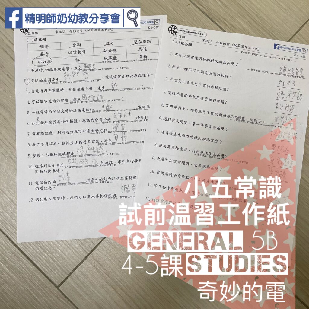 P5 – 5B (4-5課) 奇妙的電 (試前温習工作紙)