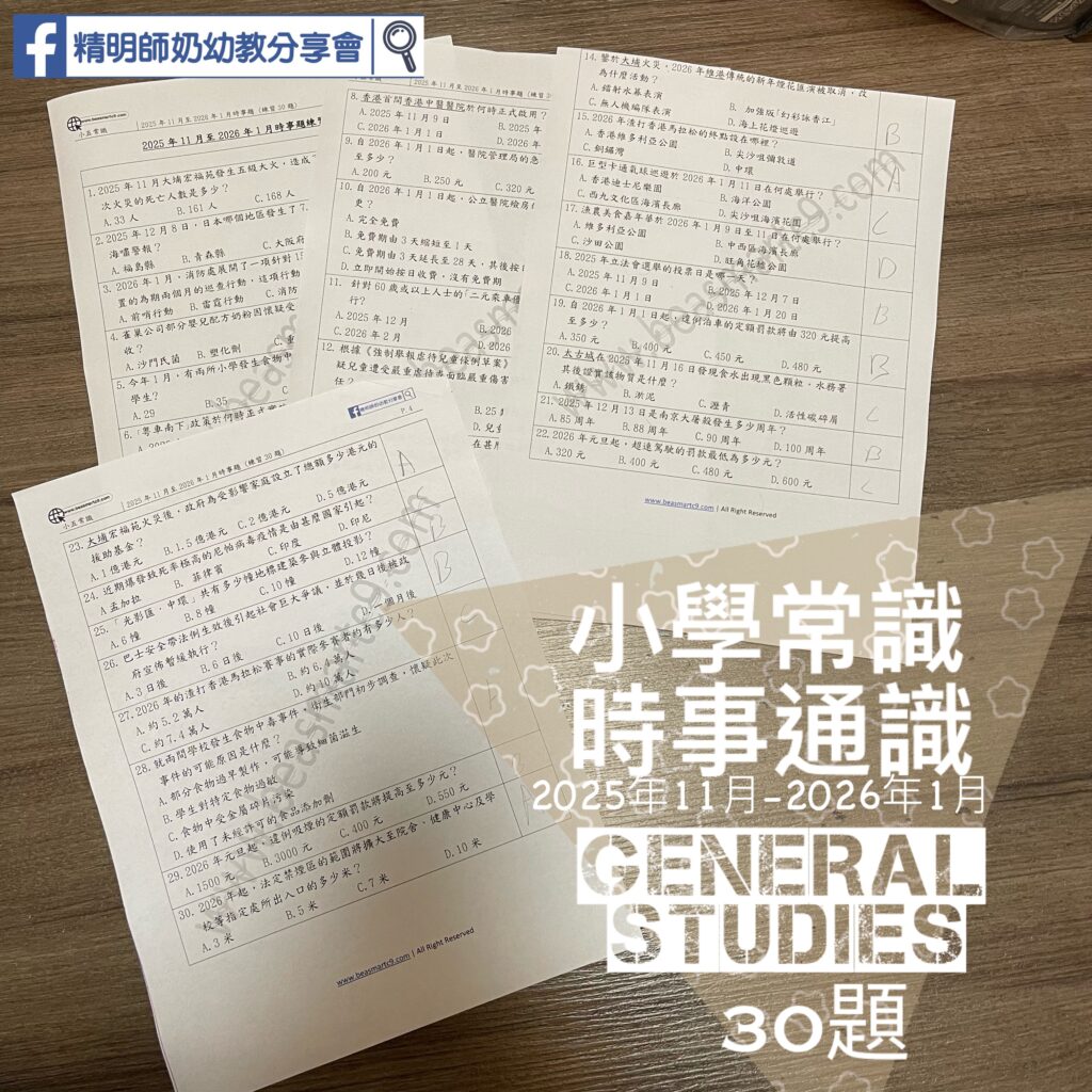 小學常識時事30題 (2025年11月至2026年1月)
