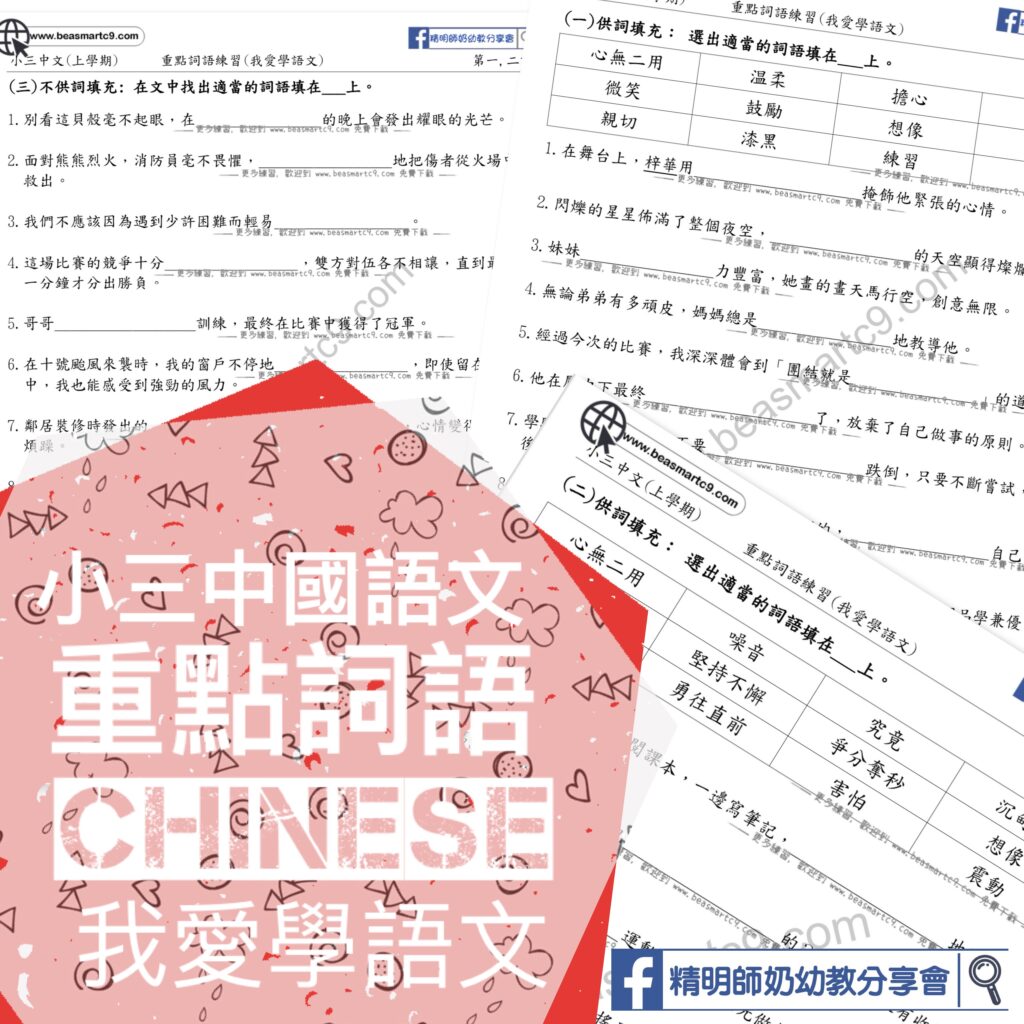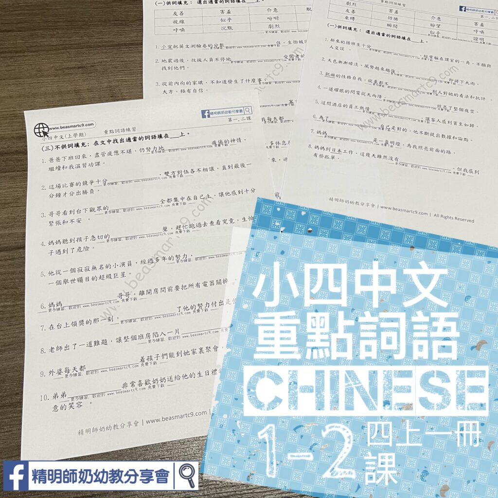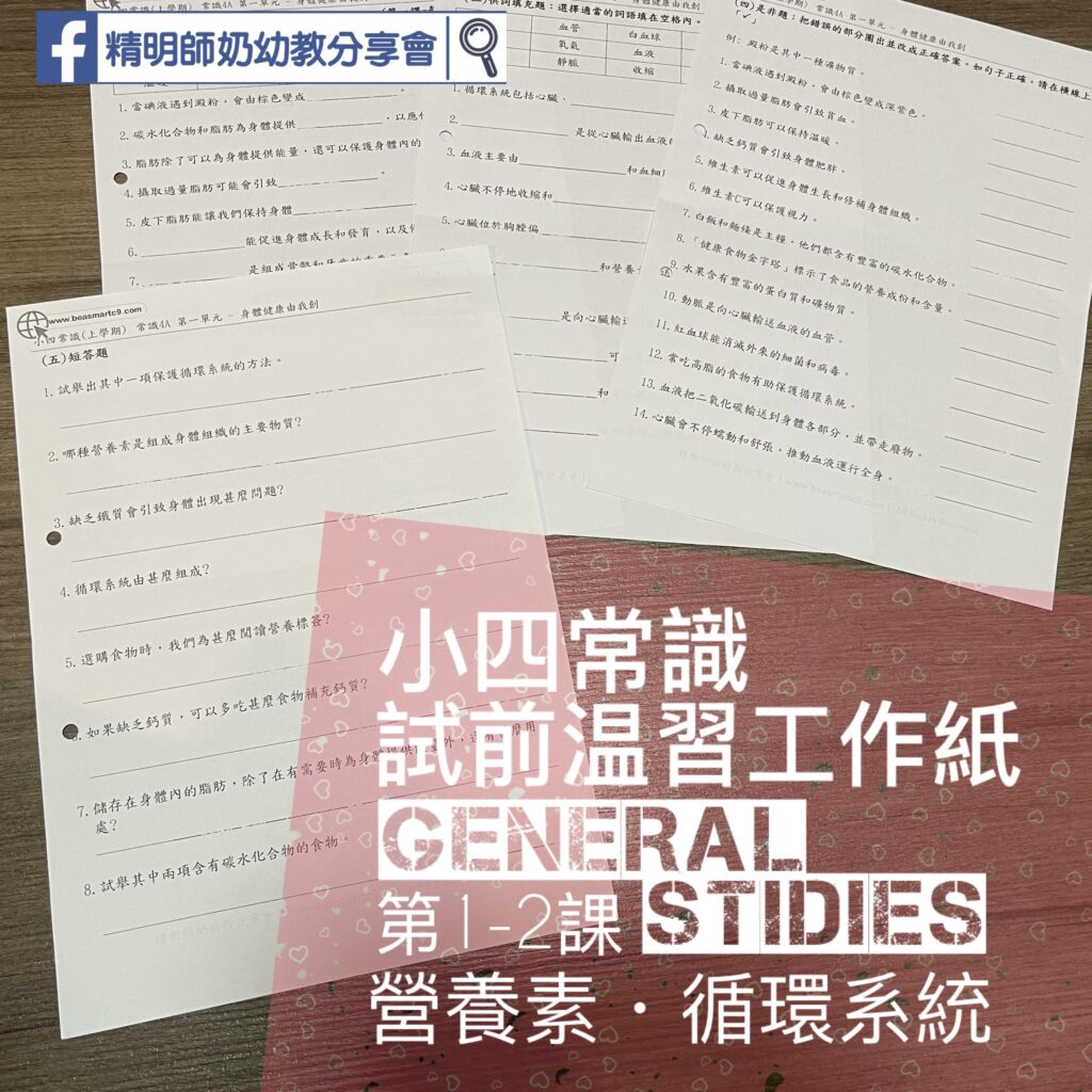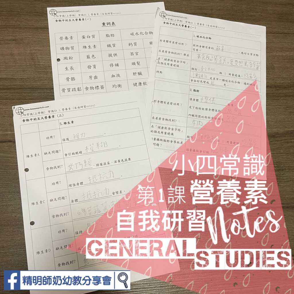 話咁快就教完第一課啦。今年,想小朋友繼續學習自己温書,做咗啲自我研習notes,可以比小朋友用來做預習,或者用來温書用。開頭仲有一頁嗰課既重點詞語。全部都係課文內的重點,小朋友做完呢張工作紙後,可以留返來當第日考試的温習天書。**沒有答案~! 唔識可以專頁問,希望真係比小朋友認真做。