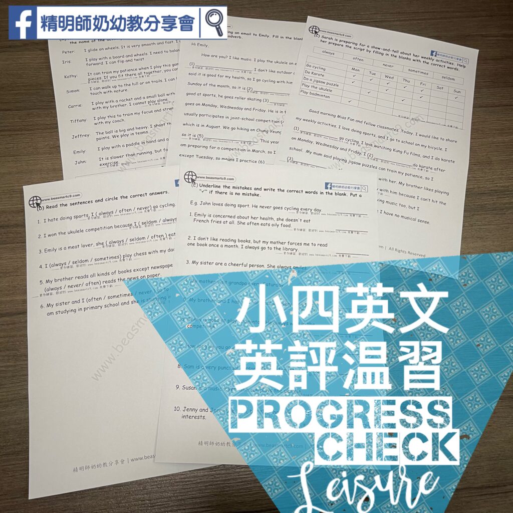 做咗個課文温習。出面搵Grammar練習唔難,但搵Vocab同課本同步的Grammar就要花啲時間。✅課文重點詞語✅Grammar Review (Frequency of adverb)✅Questions Words