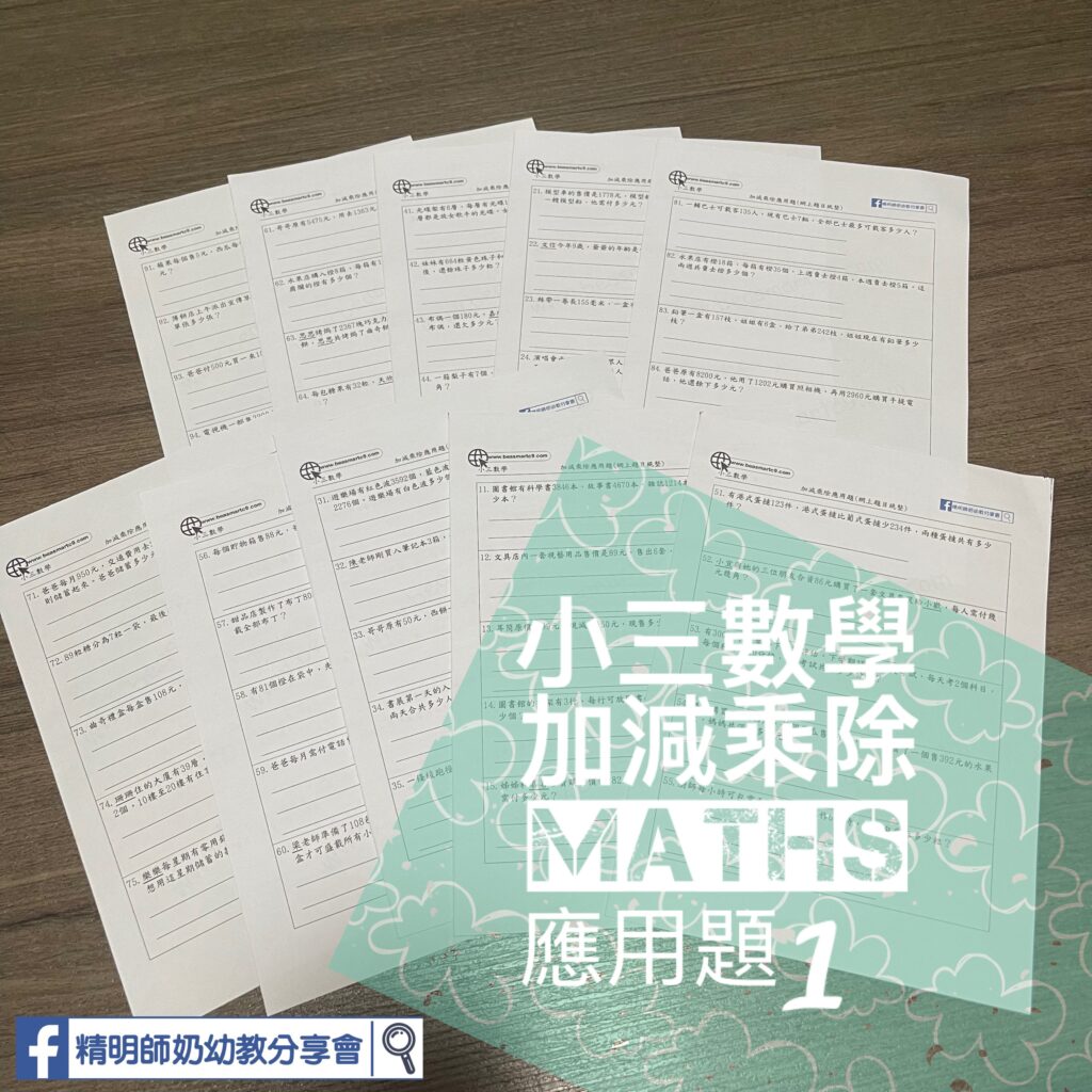 好耐無做過數學練習啦!今次做咗兩個混合數學題!呢類題目唔係用來操,只係做revision!主要係比小朋友釐清Concept,三頁紙做四類題目,每樣少少,無咁悶!