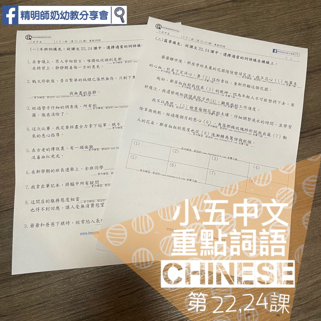 P5, P5 中文, 中文, 成語, 詞語運用P5 中文重點詞語 (第22,24課) 我愛學語文 iohcecila / January 20, 2026 ✅不供詞填充 (22, 24課)✅篇章填充✅四字成語✅説明手法