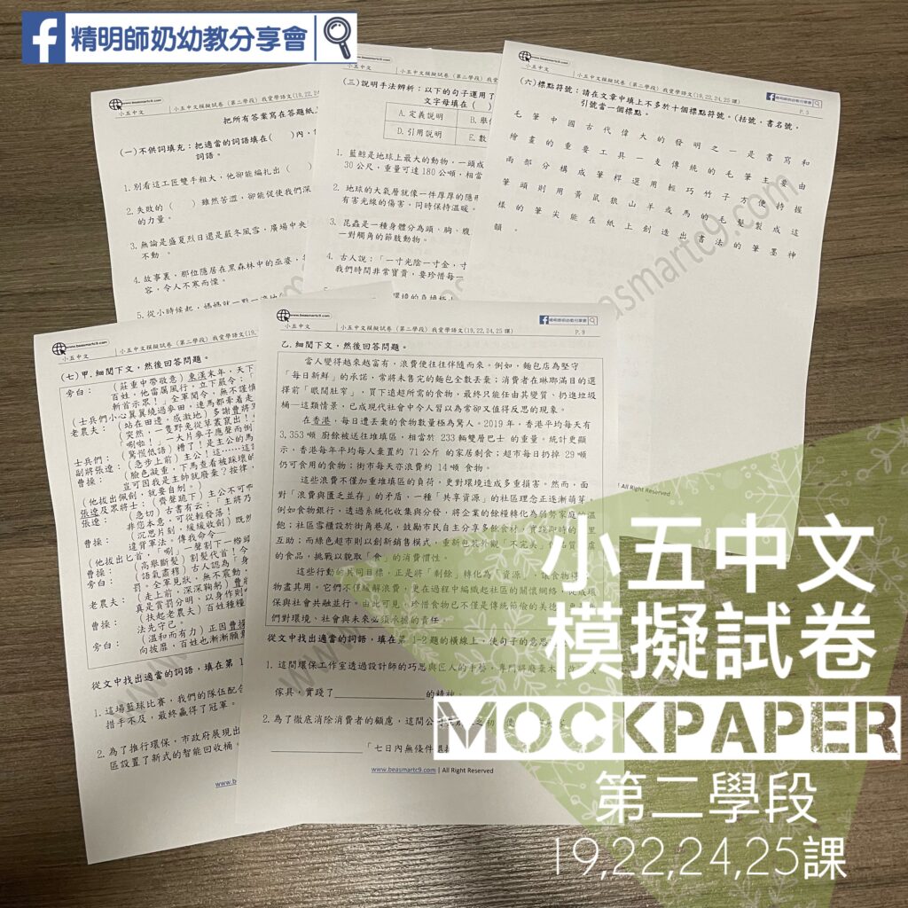 中文, 修辭手法, 模擬試卷, 詞語運用, 閲讀理解P5 中文模擬試卷(第二學段) iohcecila / February 4, 2026 範圍: 我愛學語文 (19,22,24,25 課)✅ 不供詞填充✅ 成語運用✅ 說明手法辨✅ 詞義辨析✅ 段義辨析✅ 標點符號✅ 閱讀理解 2 篇