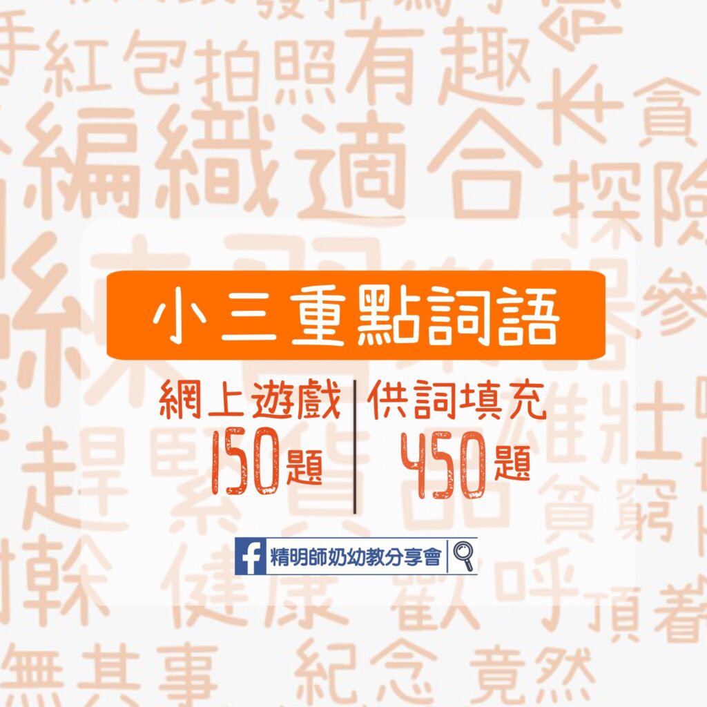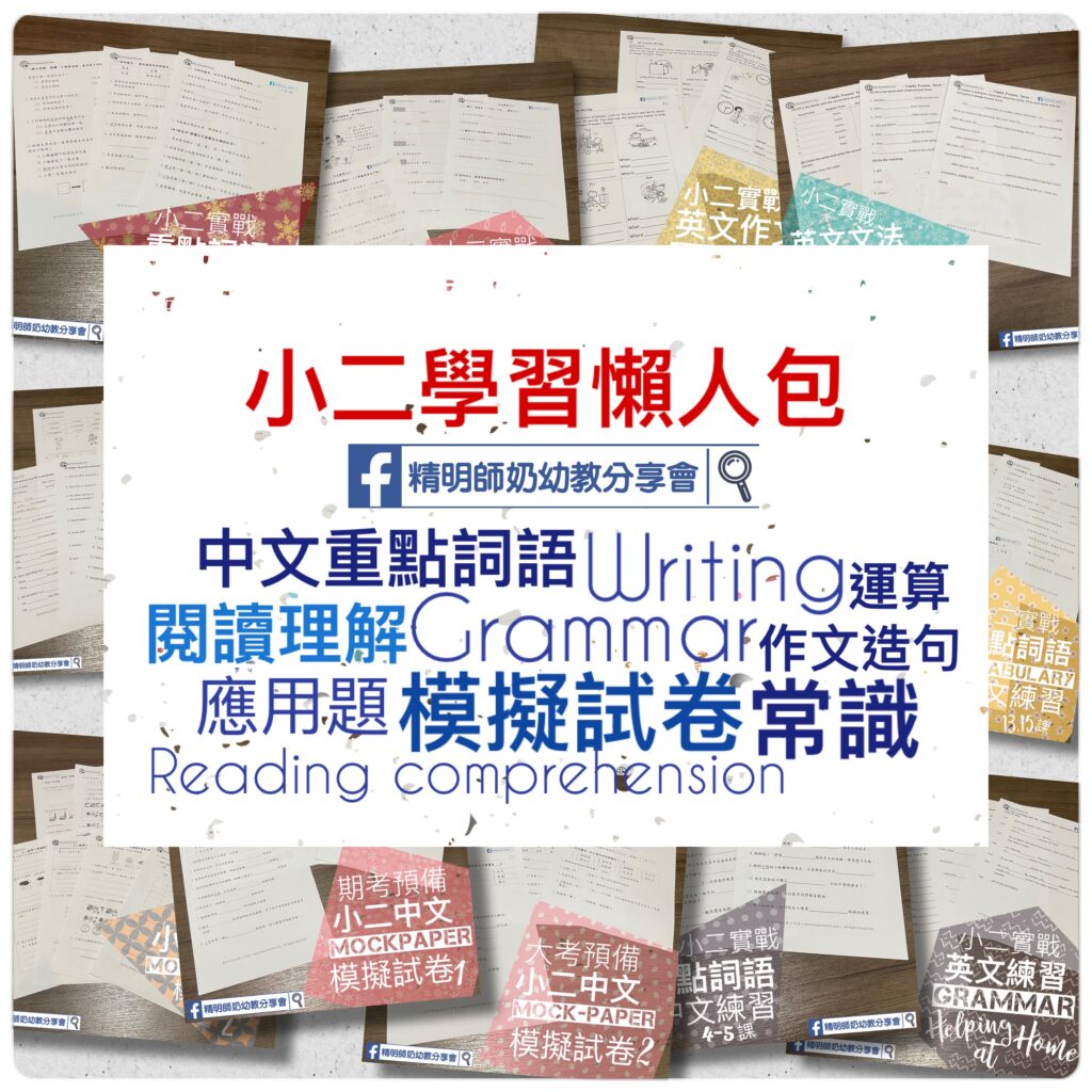 小二中文練習 (所有練習) 小二英文練習 (所有練習) 英文主題學習,已經包括晒小二這年學的所有Vocabulary同Grammar Usage! 大家想知小一要串咩字,可以參考Study set! 小二數學 (所有練習) 小二常識 (所有練習) 其他級別懶人包小一學習懶人包(一頁好收藏) – 適合K3或升小一K3學習懶人包 (一頁好收藏)– 適合K2或升K3K2學習懶人包(一頁好收藏) – 適合K1或升K2K1學習懶人包 –