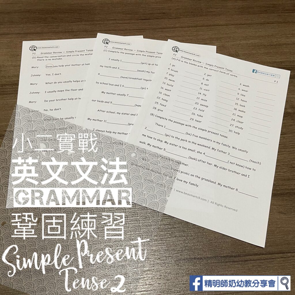 之前已經學咗現在式+VE的基本用法!最近開始學習把現在式用在問題上。把現在式的用法統整做兩個表!希望小朋友無咁混亂!😓基礎打好實在係好重要,仲有好多Tenses要學呀!😅 重温: P2-英文文法鞏固練習(Simple Present Tense)