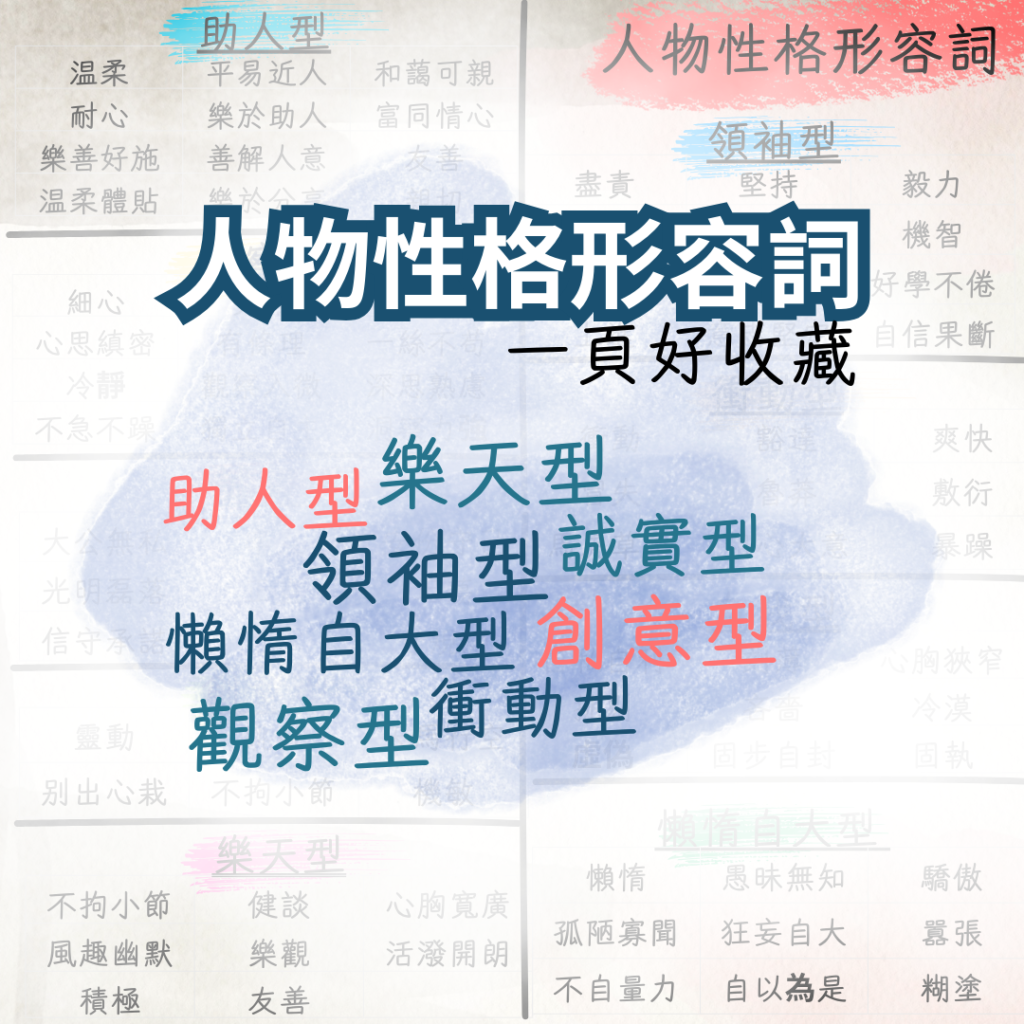 描寫文係小四中文課程裏面會學到嘅作文文體 。常見嘅題目包括一個我最尊敬/最喜愛的人 。我的老師/朋友/家人…..等等 。小朋友除咗要形容人物的外貌,仲要寫出日常事例(常常發生/有代表性)以說明人物的性格 。起初,我以為從事例中舉出人物性格是一件很容易的事 。但我發現小朋友的詞彙不足,只係可以用一啲簡單嘅形容詞,有時講來講去的詞語都係善良、友善、勤力、樂於助人……或者寫唔出來。 後來我地嘗試分析人物的性格,從而建立形容詞的詞彙庫+例子。比如助人型的人通常都是善良,樂於助人,温柔體貼…除此之外仲可以善解人意,平易近人,富同情心……等。整理好一本24頁的手册。內容包括:✅佳詞佳句參考 – 正面/負面人物性格特點 – 描寫人物的外貌 (頭髮/臉型/身形/皮膚膚色/眉毛/眼睛/鼻子/嘴巴) – 人物格的形容詞 (領袖型/助人型/膽小怕事型/觀察型/樂天型/誠實型/衝動型/懶惰自大型/自我型/創意型)✅人物性格的實用例子(練習)
