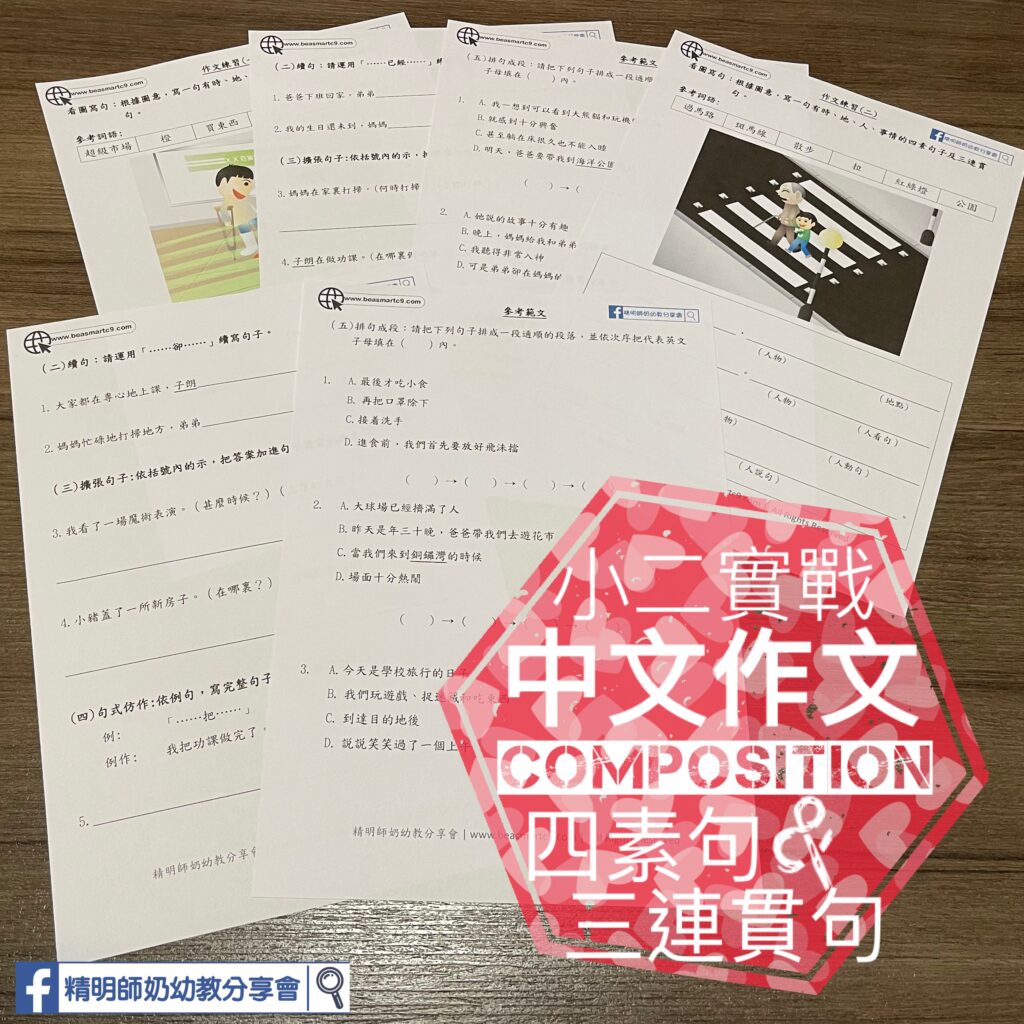 小一時主要學習四素句,同簡單的行為句式!有啲家長會問點解要學寫呢啲行為句式呢?其實小一時學的句式,就係作文的內容結構!最簡單,我地會比一幅圖畫小朋友,叫佢地用四素句+行為句式寫3連貫句😝咁樣就可以簡單描述到圖畫內容!家長可以引導小朋友用下面方法思考: 1️⃣ 以四素句作為開端,簡單描述圖畫的發生時間、人物、地點、事情 2️⃣ 以行為句式描述你在圖中看到甚麼、聽到甚麼、做了甚麼、說了甚麼(人看句、人聽句、 3️⃣ 最後可以利用想到甚麼或感想作結尾(人想句、人感句)寫作的第一步只需要學習用四素句+行為句式寫4句!之後就要學習多用形容詞/四字詞把句字修飾,亦要多用不同的句式來作文!