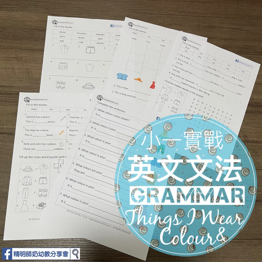 Possessive Adjectives包括「My」,「His」,「Her」,「Your」,「Their」,「Our」,「Its 」,主要用來表示物件是誰人擁有。之前的主題學習Things I wear & Colour 已經學過。今次呢個練習主要想温習possessive adjectives同埋clothing的生字😊 Subject Possessive Adjectives I My He His She Her It Its They Their
