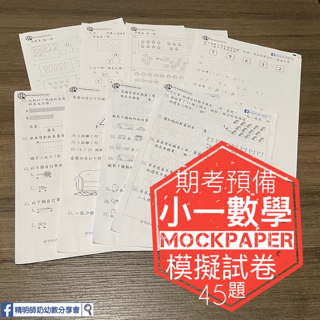 雖然有個長假期,可惜假期後就上學期期考了。放假都仲溫書。做咗一份雜錦的模擬試卷,應該包晒今次要考的內容!一份8頁共45題。 ✅ 數字邏輯✅ 數字合成和分解 ✅ 基本加減數學運算✅ 圖解加減數學應用題✅ 物件的位置✅ 量度距離、長度✅ 永備尺