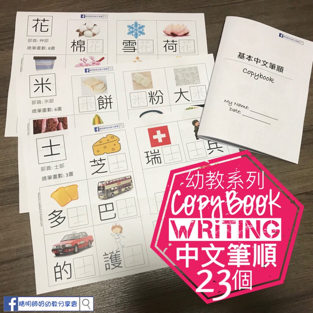 中文 – 筆順copybook(23個)