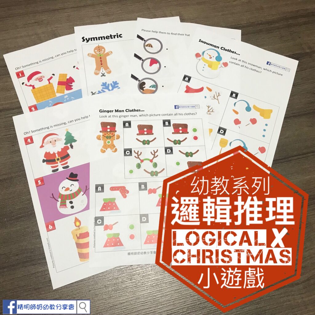 好耐都無做過邏輯推理練習啦!成日都要寫字,見就來聖誕,整咗一個簡單的綜合練習比小朋友玩下!可以畫下圖畫,又有少少邏輯題目,有淺有深!睇下小朋友識唔識啦!一共4款練習,11頁 幼教系列-邏輯推理 x 聖誕節 1. ✅ 消失的物件(尋找並畫上)x 4頁2. ✅ 對稱圖 x 2頁3. ✅ 放大鏡🔍下的帽子 x 2頁4. ✅ 重組圖畫 x 3頁
