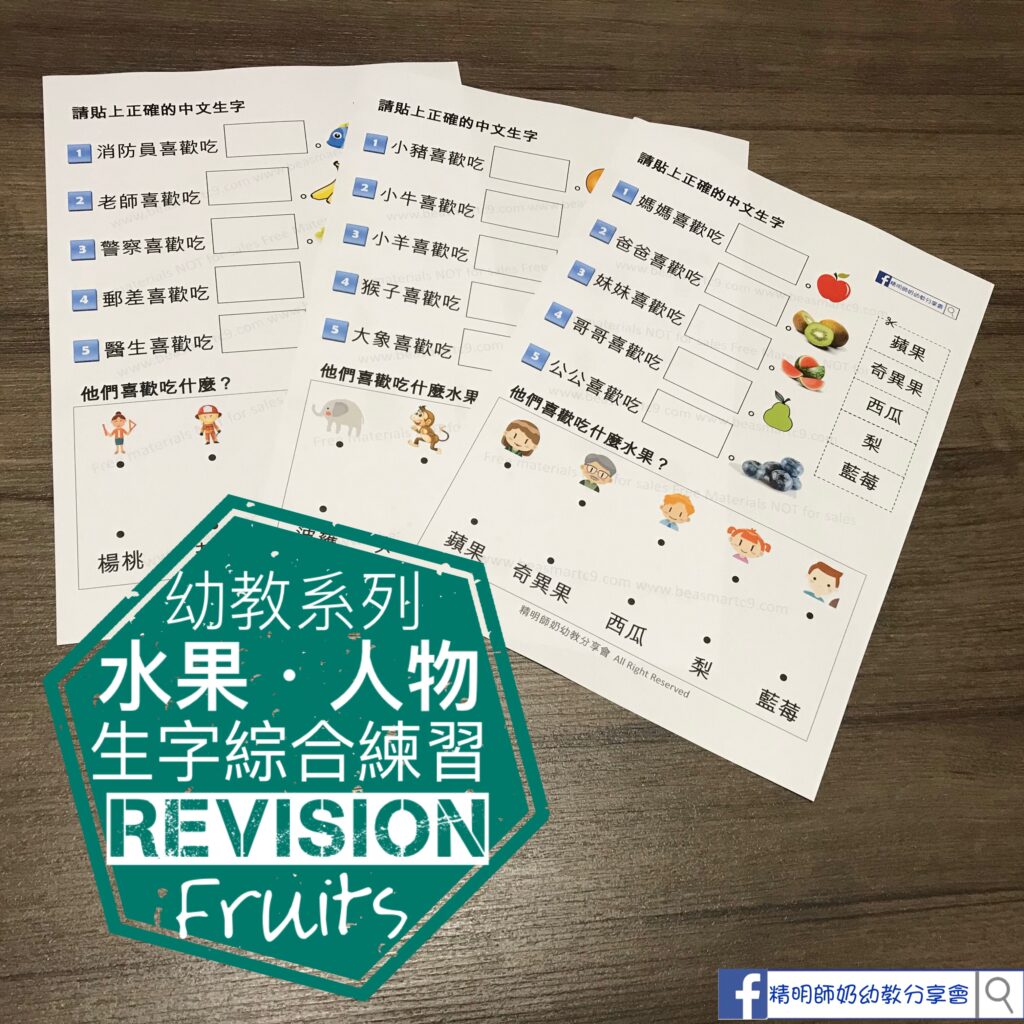 昨天接放學,老師話要溫下生果本書,因為好多小朋友都唔記得晒啦!應老師所求,做咗個簡單的中文水果練習🍎🍐🍊🍋🍓🍇🍉🍌🍒🍑🥭🥝!複習水果之餘順便複習簡單名詞!因為中文字太深,未識寫!所以生果詞語要剪貼或者好似我咁用Label🙈