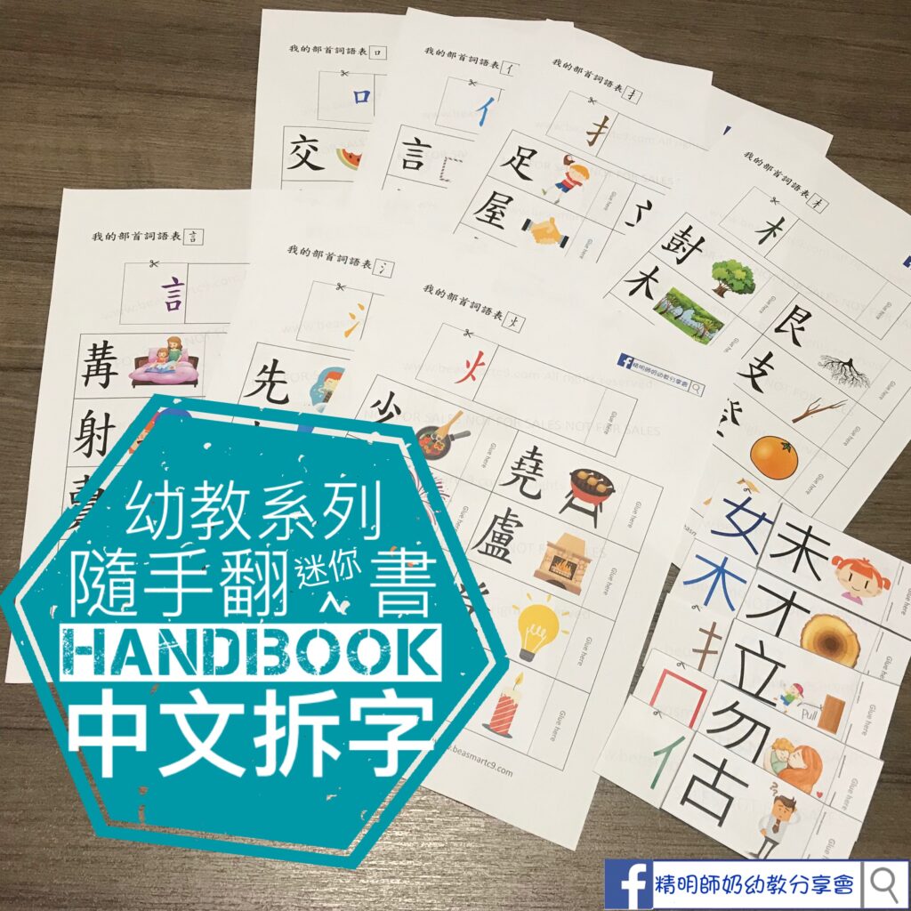 之前做咗英文版的My Words Family, 把相類近的英文生字放埋一齊學!今次試下中文版先😊好似中文拆字咁,簡單做成一本迷你書,得閒翻一翻,學習就係咁簡單! 中文詞語拆字 – 隨手翻迷你書✅ SET 1 – 火, 氵, 土, 目, 言 ✅ SET2 – 扌,亻, 女, 口, 木